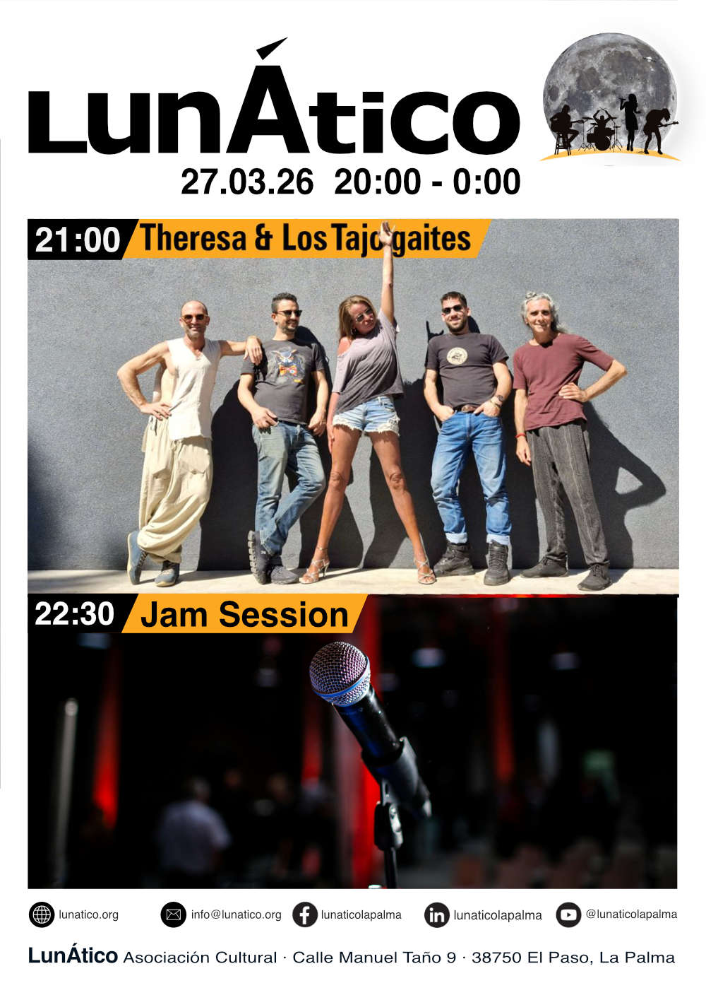 Vuelve la voz del volcán: Theresa & Los Tajogaites presentan este viernes otro concierto de su rock alternativo original en tres idiomas, lleno de ritmos explosivos, letras sin filtros y nuevos temas. Forma parte de esta energía ardiente - ¡nos vemos en el #lunático #lapalma!