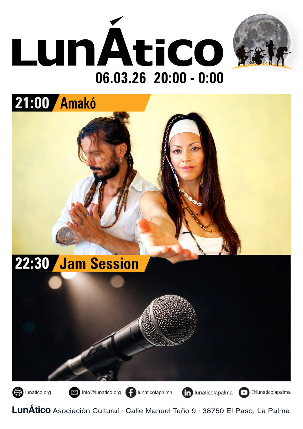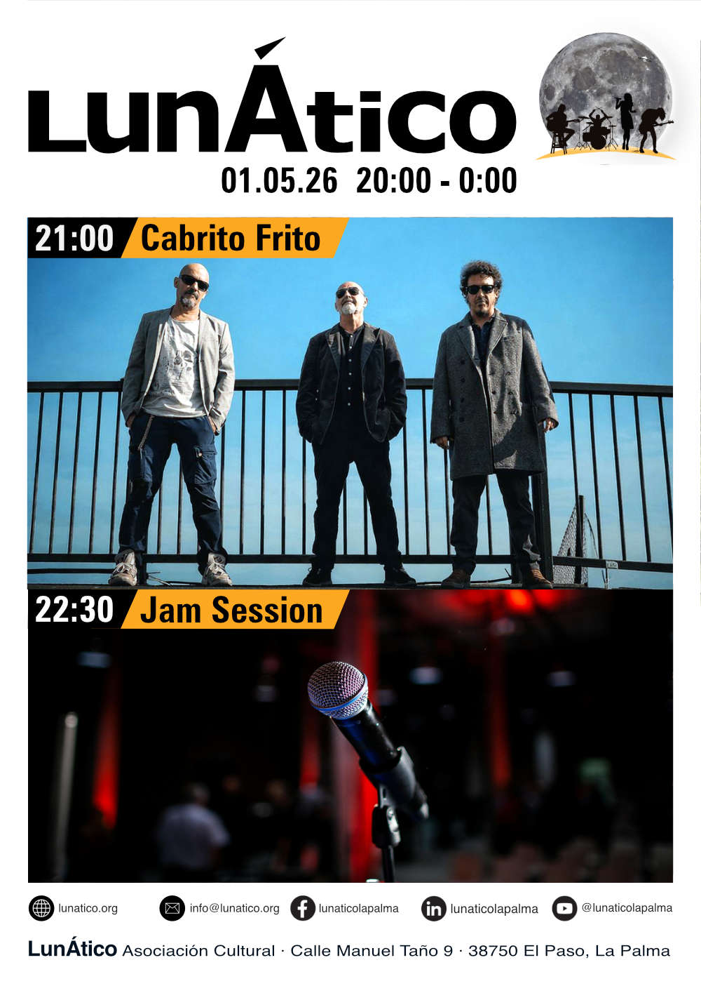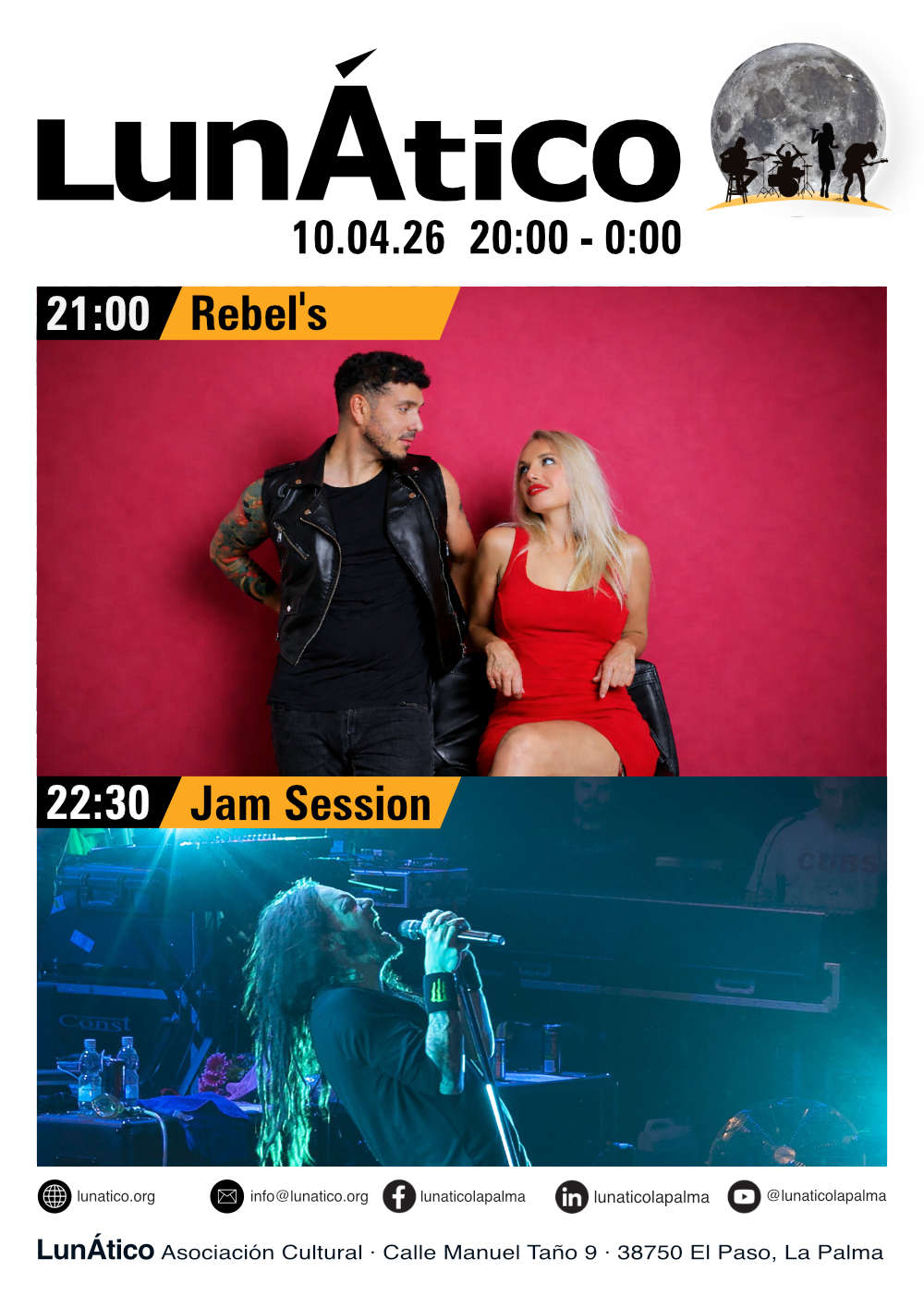 ¡Buena música en vivo, conciertos increíbles y eventos emocionantes, todo en el LunÁtico, La Palma! Si eres amante de la música en vivo, los conciertos memorables y los eventos vibrantes, ¡El LunÁtico en La Palma es el lugar perfecto para ti! Aquí, en un ambiente único, artistas locales e internacionales suben al escenario para ofrecer lo mejor de la música en vivo.