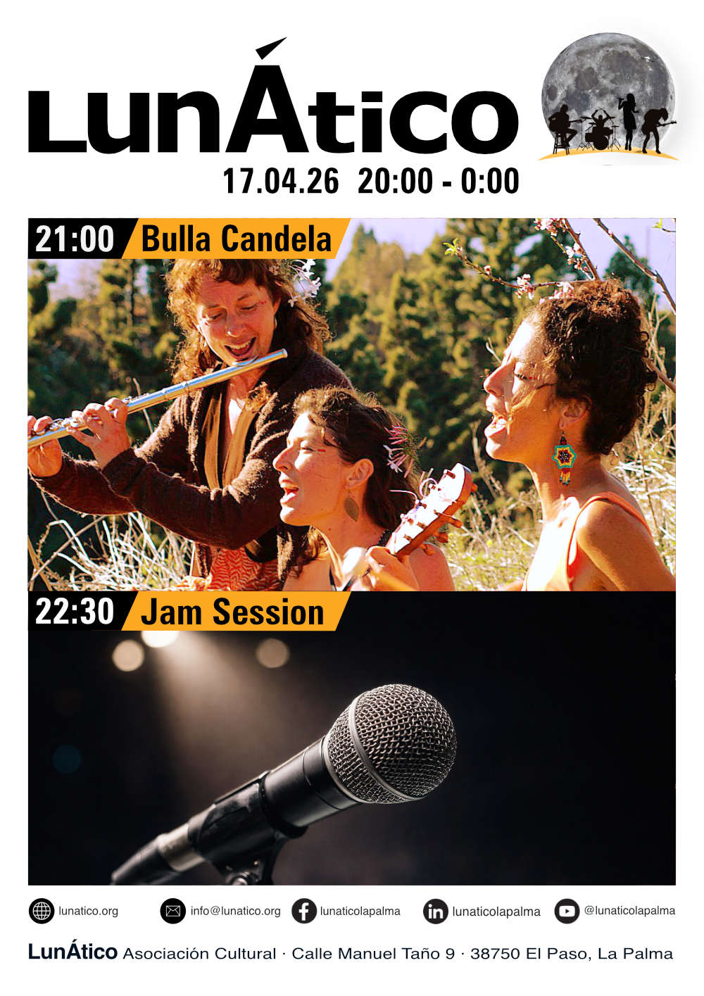Folclore exótico y muy bailable: este viernes presentamos a Bulla Candela, una formación que les van a encantar por sus ritmos apasionados y voces polifónicas con chispas afrolatinas, rumberas y composiciones propias. Prepárense para un espectáculo artístico único - ¡nos vemos en el #lunatico_lapalma!