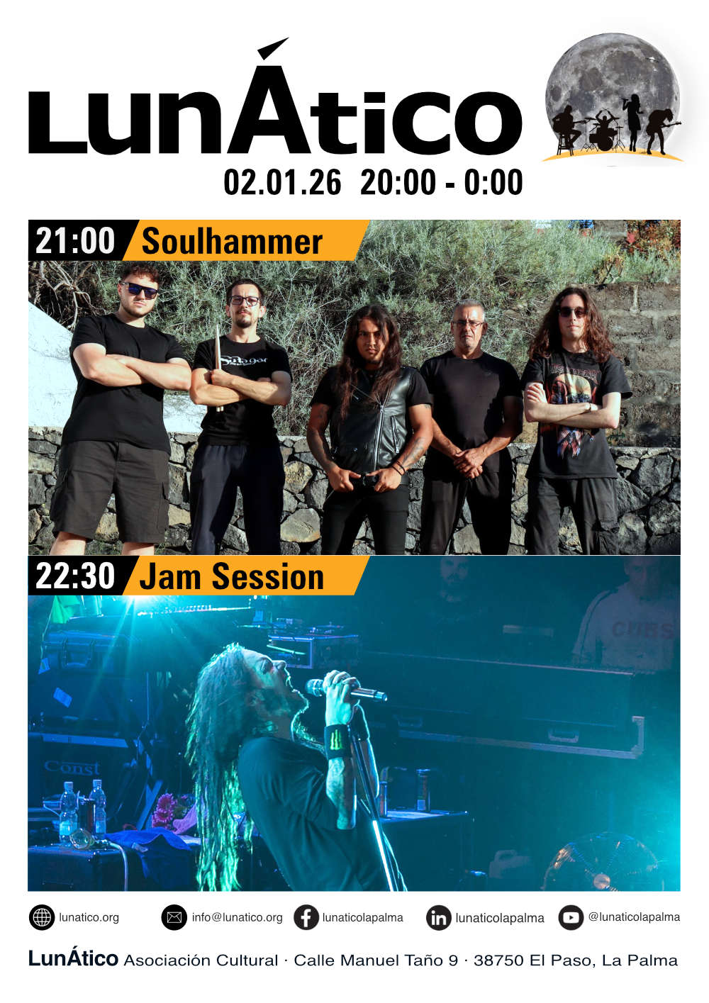 Frohes Neues! Wir feiern das so richtig krass, mit Thrash und Death Metal von Soulhammer, deren harter und intensiver aber melodischer Stil euch begeistern wird. Lasst uns das neue Jahr mit ganz viel Power beginnen - wir sehen uns im #lunatico_lapalma!